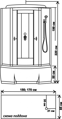 Душевая кабина BM-8207В выс.поддон,задняя стенка черная, стекла матовые 150*85*215 Водный мир