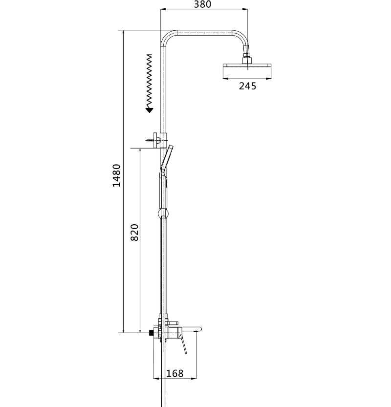 Душевая стойка Shevanik S8336 - модель с литым изливом, тропической верхней лейкой и ручным душем, цвет "хром". Верхний душ на шарнире, который позволяет регулировать наклон лейки, регулируется по высоте. Душевые лейки с защитой от образования известкового налета, шланг с защитой от перекручивания. Переключатель на душ расположен в нижней части штанги в виде поворотного рычага.