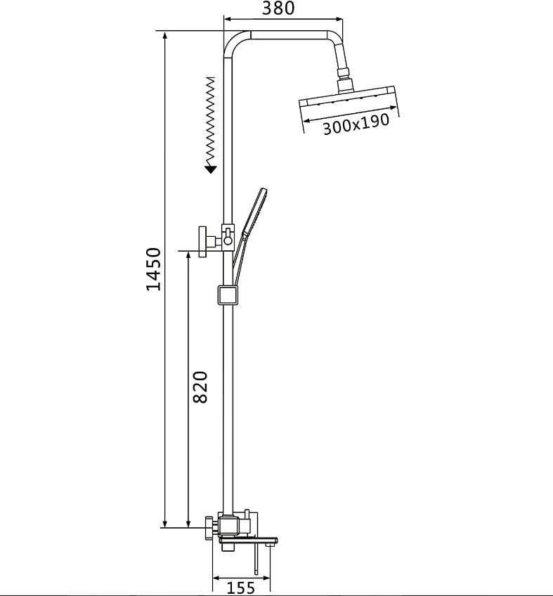 Душевая стойка Shevanik S8536 - модель с поворотным изливом, тропической верхней лейкой и ручным душем, цвет "хром". Верхний душ на шарнире, который позволяет регулировать наклон лейки. Душевой гарнитур с трехрежимной лейкой крепится на подвижном держателе. Переключение на душевой режим поворотом излива. Стойка регулируется по высоте.