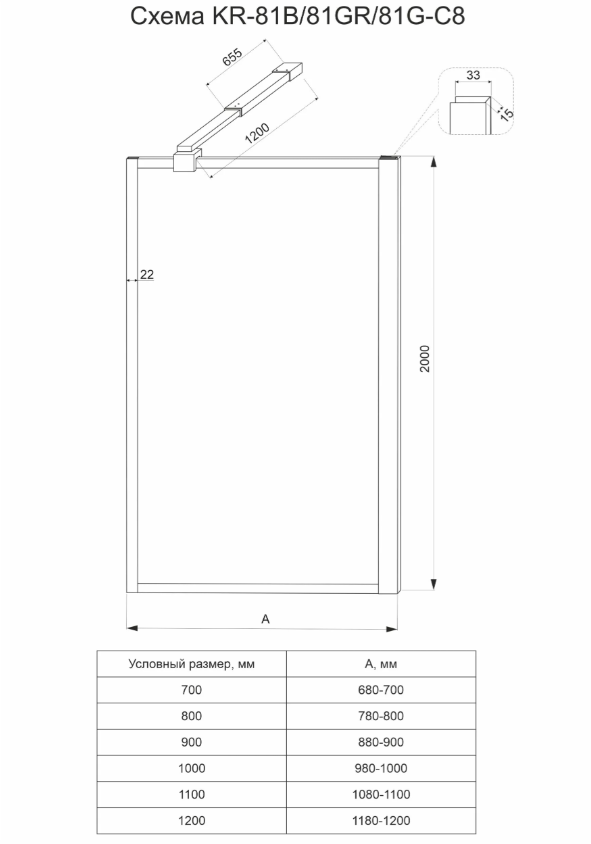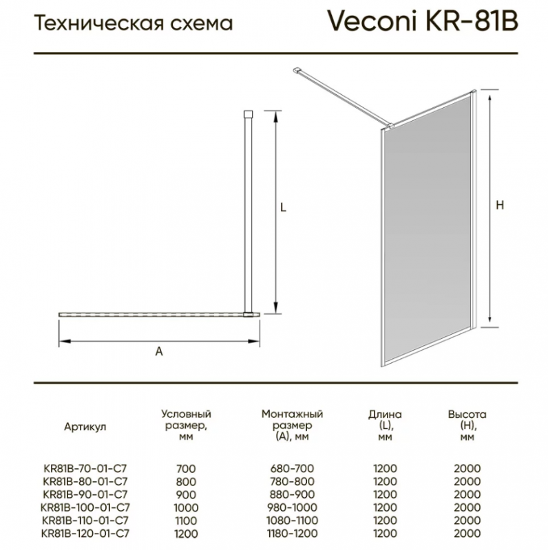 Душевая перегородка Veconi KR-81B Арт. KR81B-110-05-C8 Стекло тонированное/8 мм Veconi