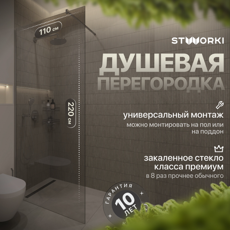 Душевая перегородка STWORKI Берген 110 см, профиль хром глянцевый, прозрачное стекло STWORKI