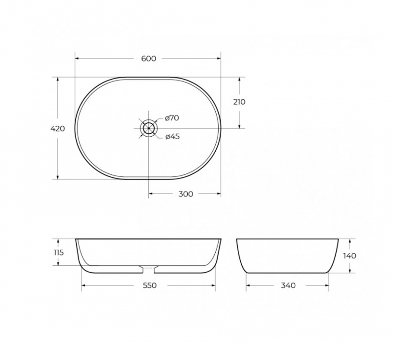 Раковина накладная 60x42 белый BB1084 BelBagno (Донный клапан приобретается отдельно) (256916) BelBagno