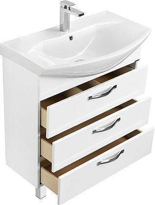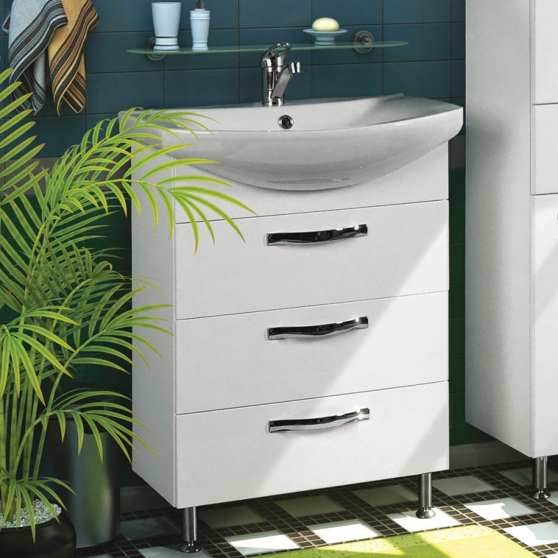 Тумба AQUATON Ария 65 Н 1A123401AA010 выполнена в современном стиле. Напольная конструкция обеспечивает легкий монтаж и не требует специального ремонта в помещении. Модель оснащена тремя выдвижными ящиками для хранения необходимых в ванной комнате принадлежностей, верхний ящик с системой организации пространства. Корпус изделия выполнен из влагостойкой ЛДСП, а фасад из высококачественной МДФ и окрашены белоснежной глянцевой полиэфирной краской ультрафиолетового отверждения, которая обеспечивает изделию привлекательный внешний вид, а также износостойкость и долговечность.