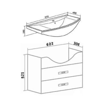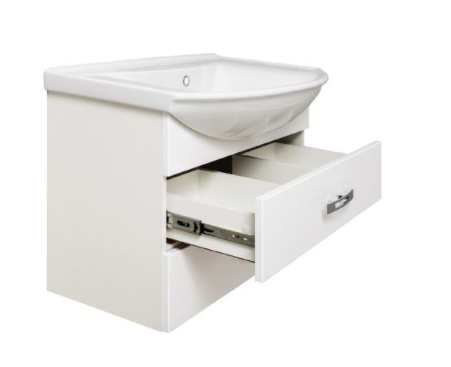 Тумба под раковину Runo Рига 65 подвесная с двумя выдвижными ящиками на шариковых направляющих с доводчиком.