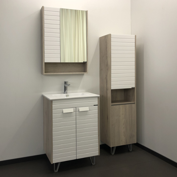 Тумба с раковиной Comforty Клеон-60Н белый/дуб дымчатый (раковина Comforty 9060M) COMFORTY