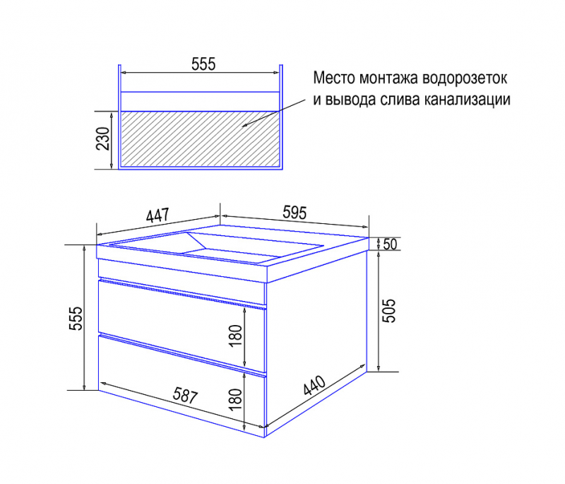 Тумба Эстима 60/2 подвесная с раковиной Астория 60 Azario