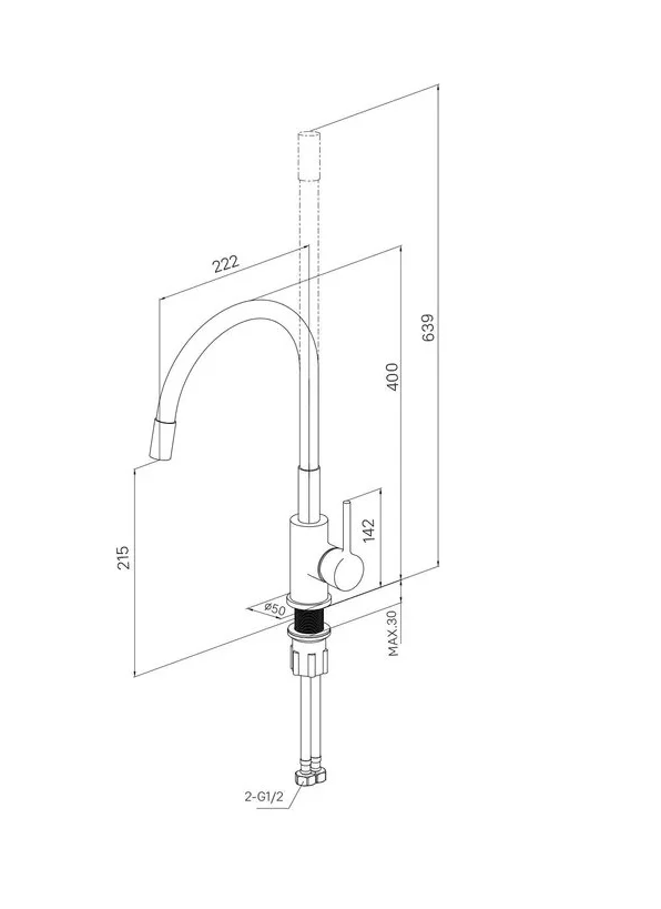 Смеситель для кухни с гибким изливом, сатин, Meal, Milardo, M01BN0FM05 Milardo
