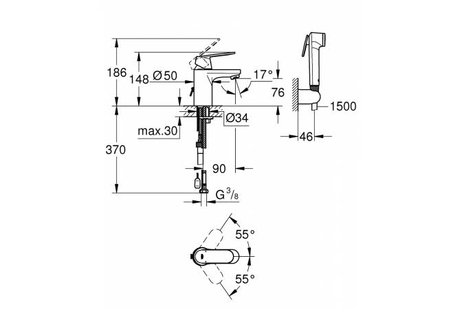 В списке преимуществ смесителя для раковины Grohe Eurosmart Cosmopolitan значится система быстрого монтажа на мойку с использованием гибких шлангов.